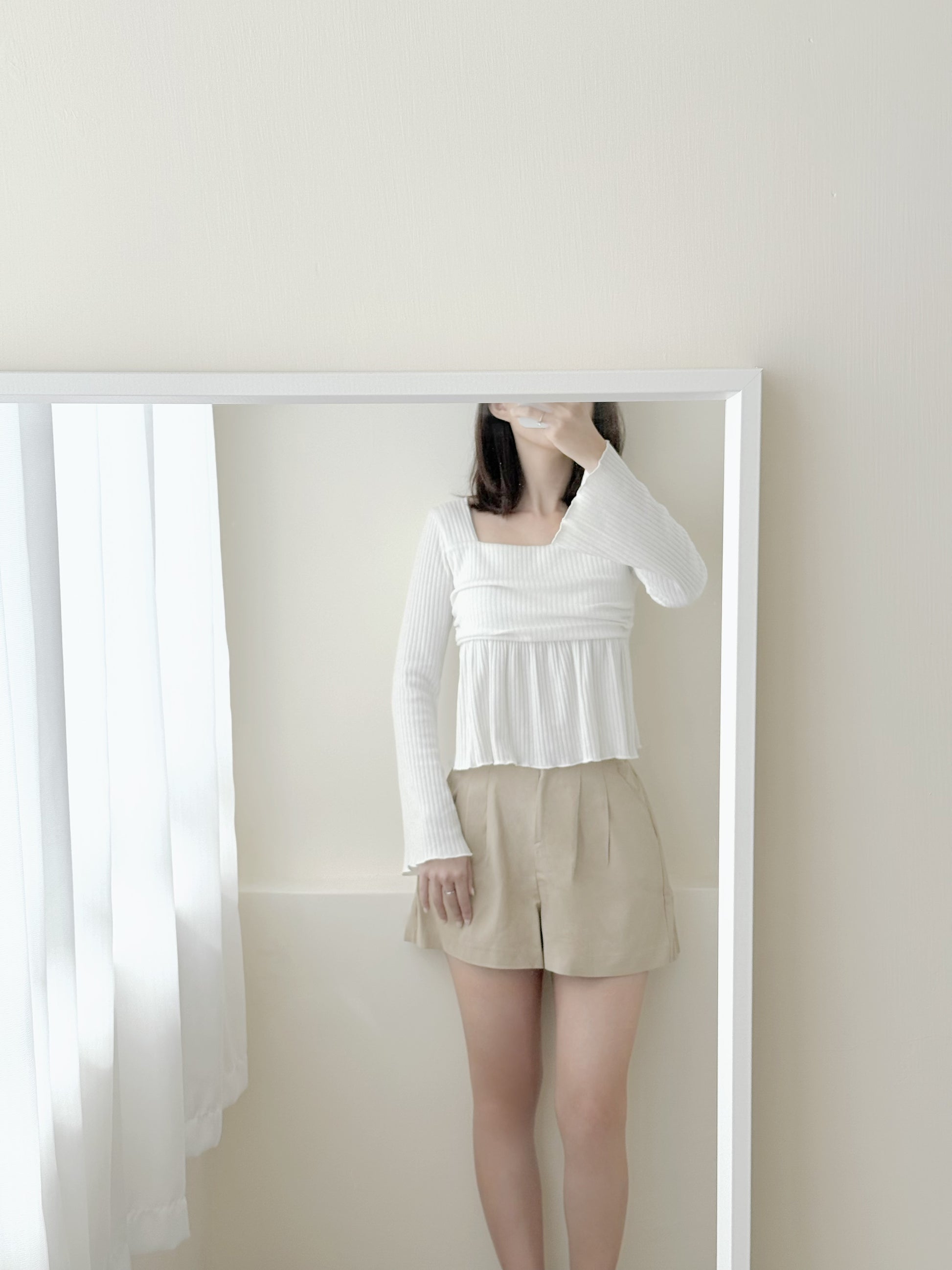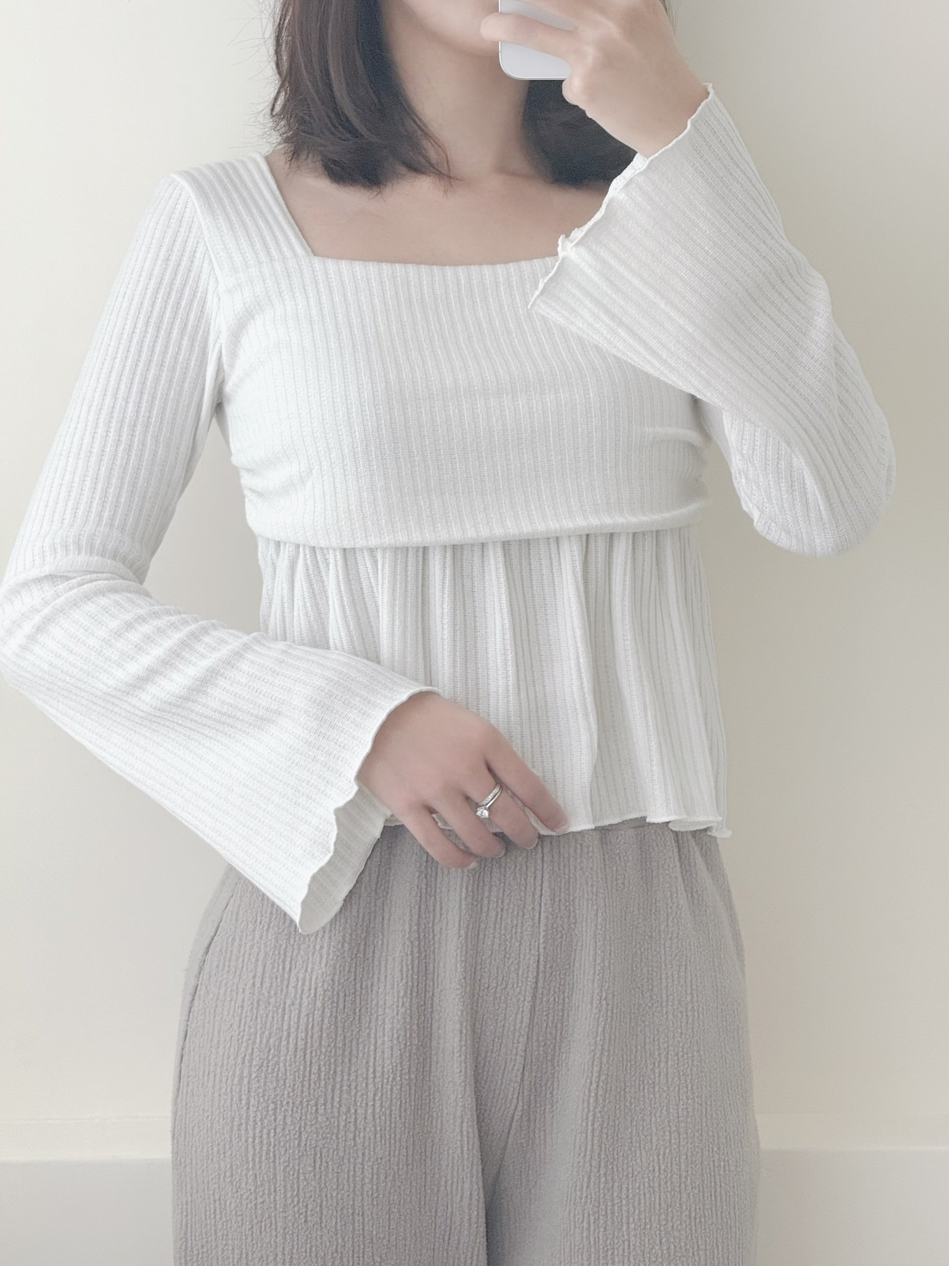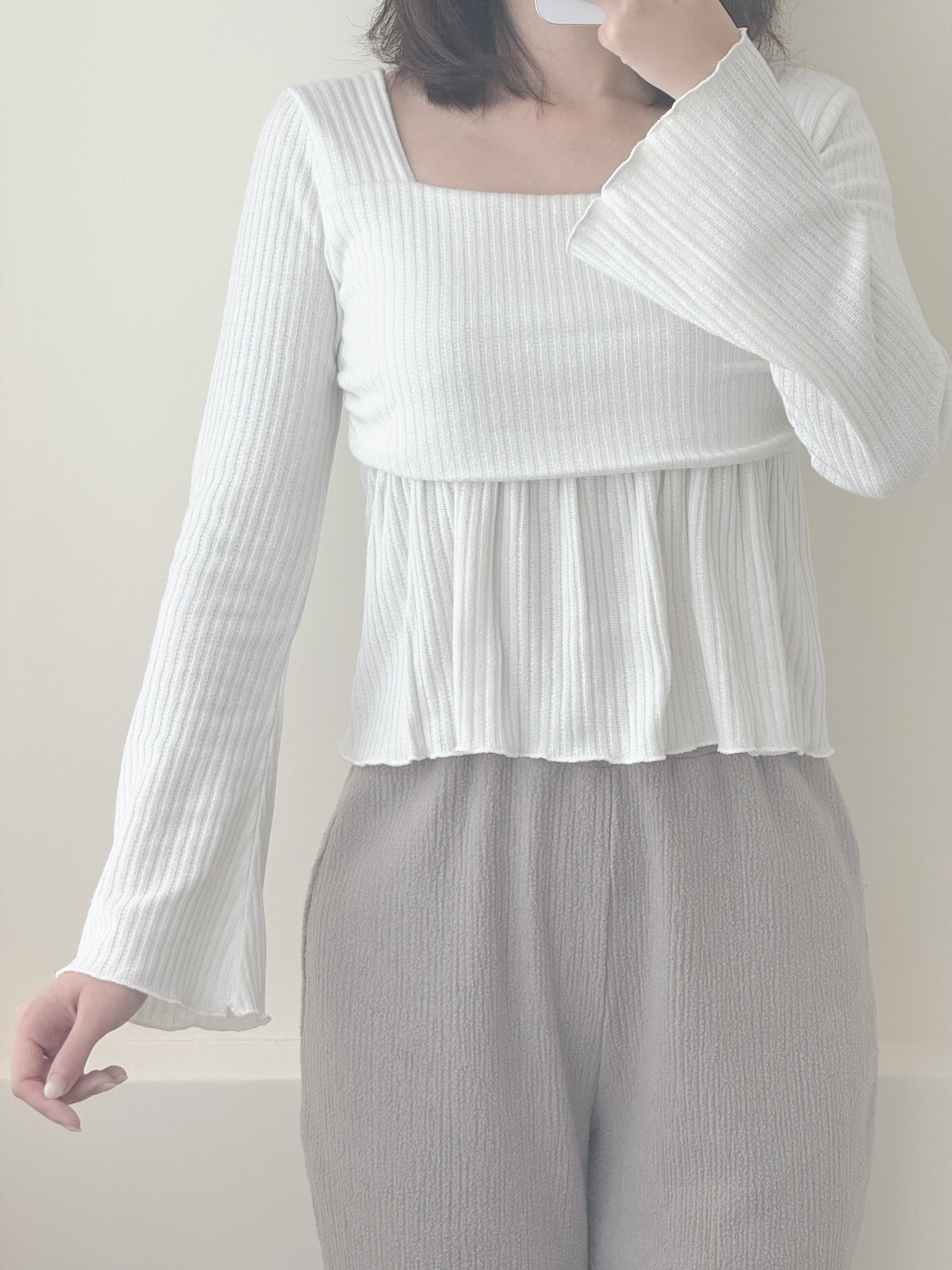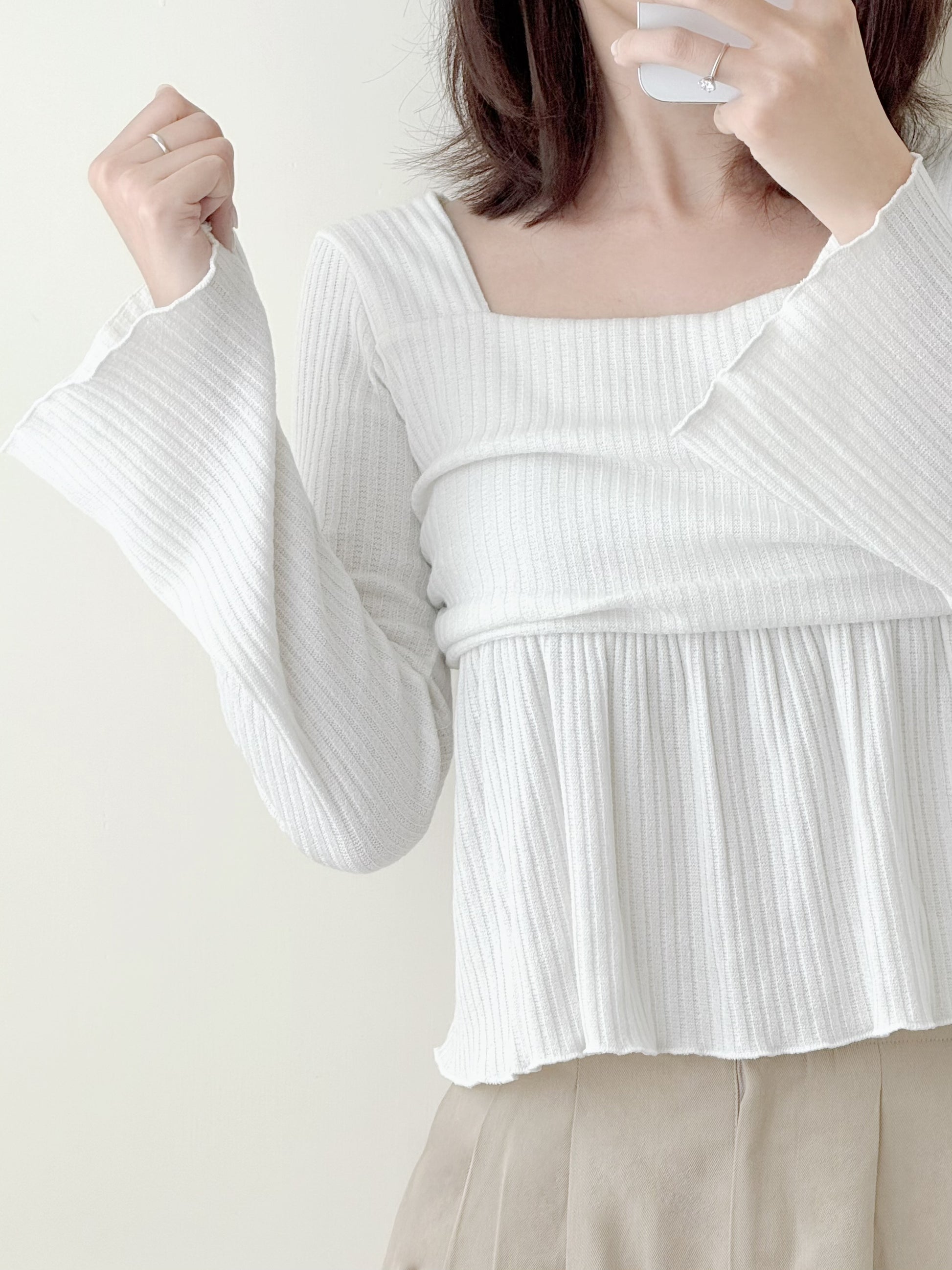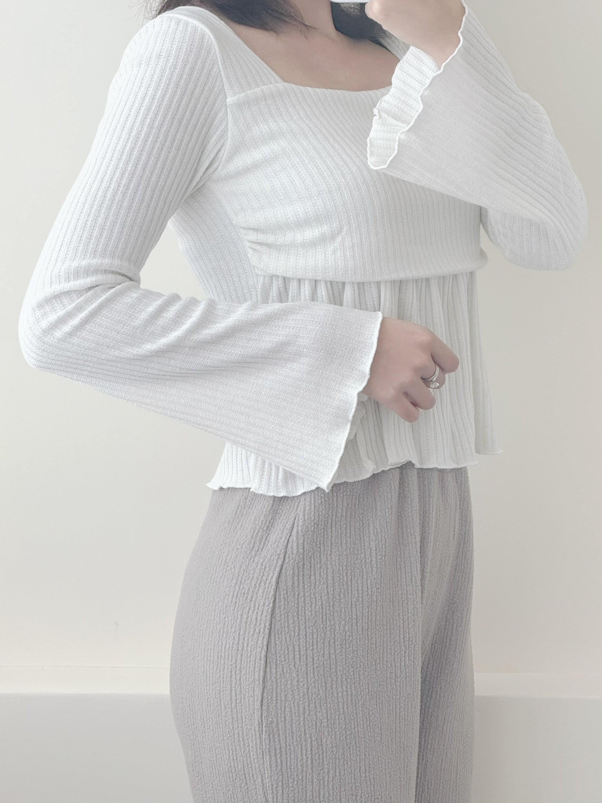 喇叭荷葉邊袖上衣