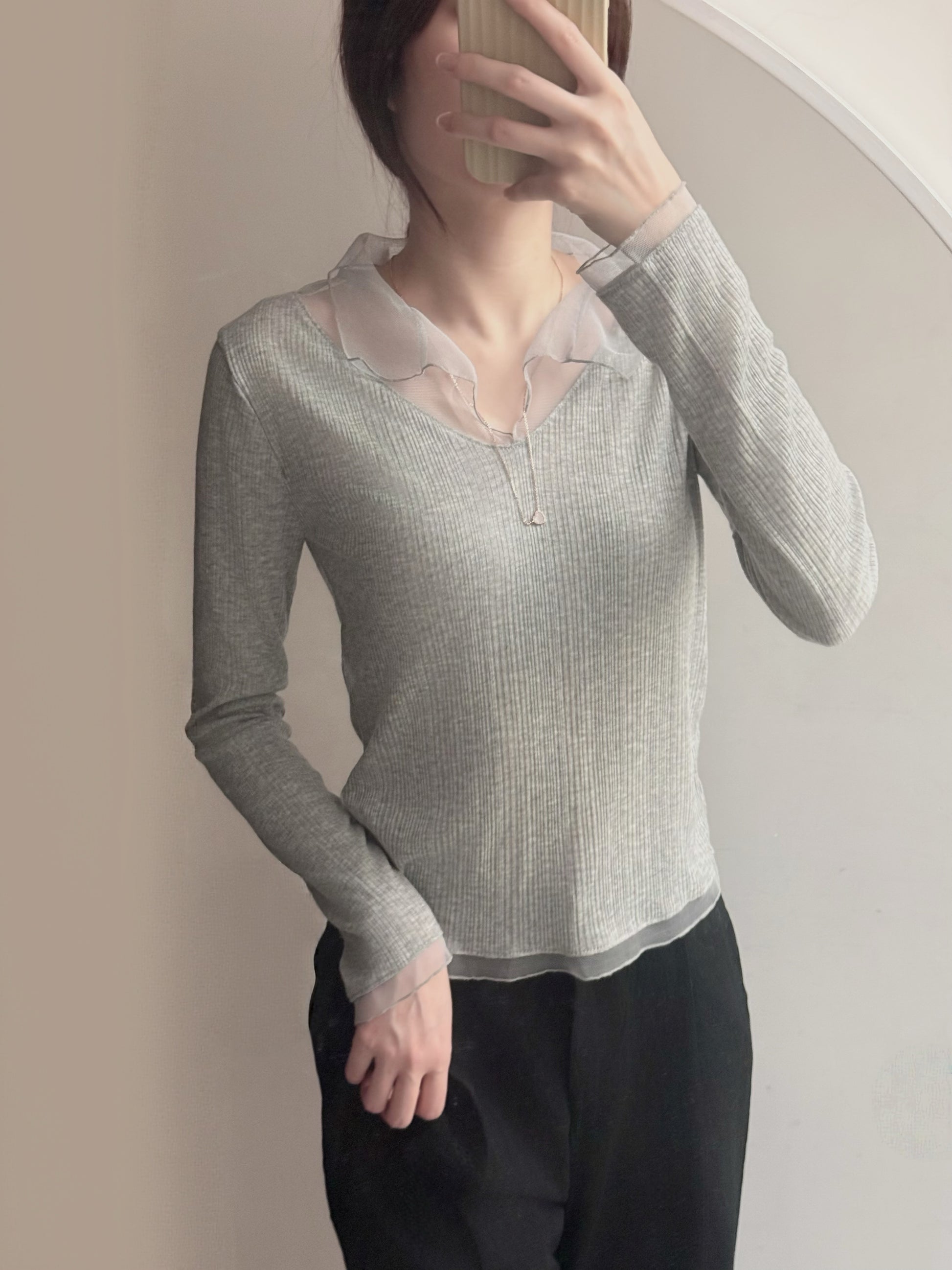 透紗領安哥拉上衣